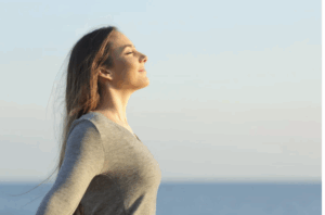 - 背中が丸いと、呼吸が浅くなり、気分も沈みがちに